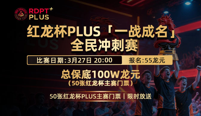 红龙杯,自2008年创立以来,已走过十七载光辉历程。无数扑克爱好者从这里启程,在一次次对垒中磨砺成长,与这项赛事共同镌刻下属于自己的难忘印记。 从澳门到济州岛,红龙杯已然成为亚洲扑克版图中一座不可撼动的坐标,它不仅承载着赛事本身的分量,更是一代代玩家心中梦想起航的地方,将竞技精神与仪式感不断推向新的高度。 2026年4月,红龙杯迎来里程碑式升级,首次推出PLUS系列赛。红龙杯PLUS主赛以400万韩元报名,设立18亿韩元保底,致力于打造亚洲顶级竞技舞台——这正是每一位扑克爱好者心之所向的殿堂。 而今,通向这一舞台又多了一个路径:3月27日20:00,「一战成名」全民冲刺赛即将开赛。 本场赛事总保50张红龙杯PLUS主赛门票(价值100万龙元)。 50个席位,意味着50个通往红龙杯PLUS主赛的机会,50个让梦想照进现实的入口。 这个与谈轩、周全等顶级pro们同台机会仅需55龙元,即可直通18亿韩元保底的主赛舞台,这样的机会实属难得。 免费参赛机会也不要错过: 3月25日0:00后新注册用户,可免费获得55门票一张;老玩家转发本海报至20人以上德州群,截图提交至APP“问题反馈”,亦可免 […]